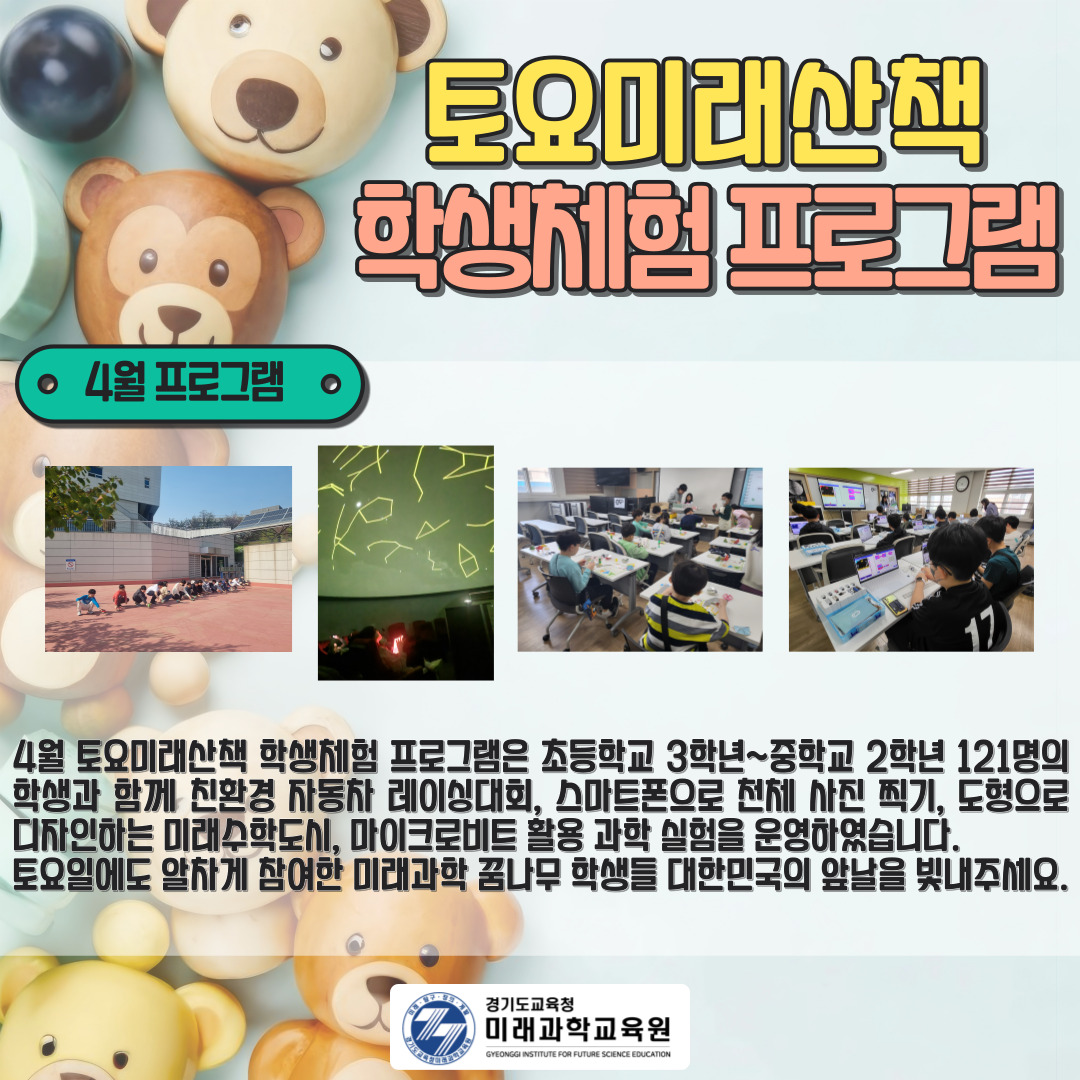 2024 토요미래산책 (4월) 학생체험프로그램 운영 2024.05.10 조회수 2,239 송희련 |