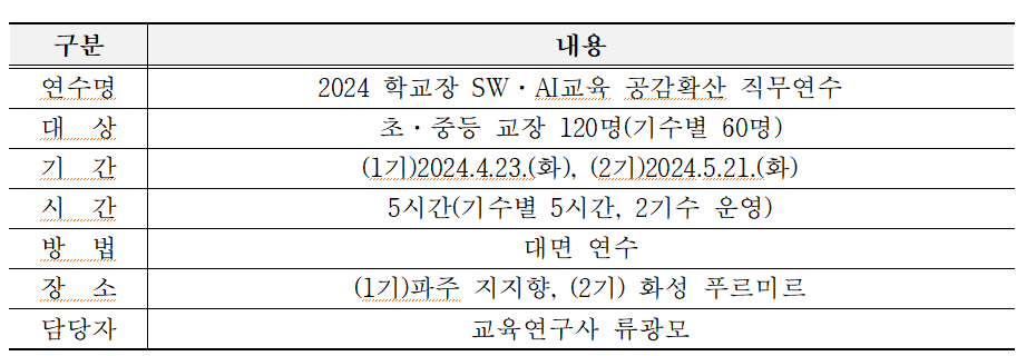 *학교장에 대한 SW‧AI교육 공감 확산을 위한 연수 운영