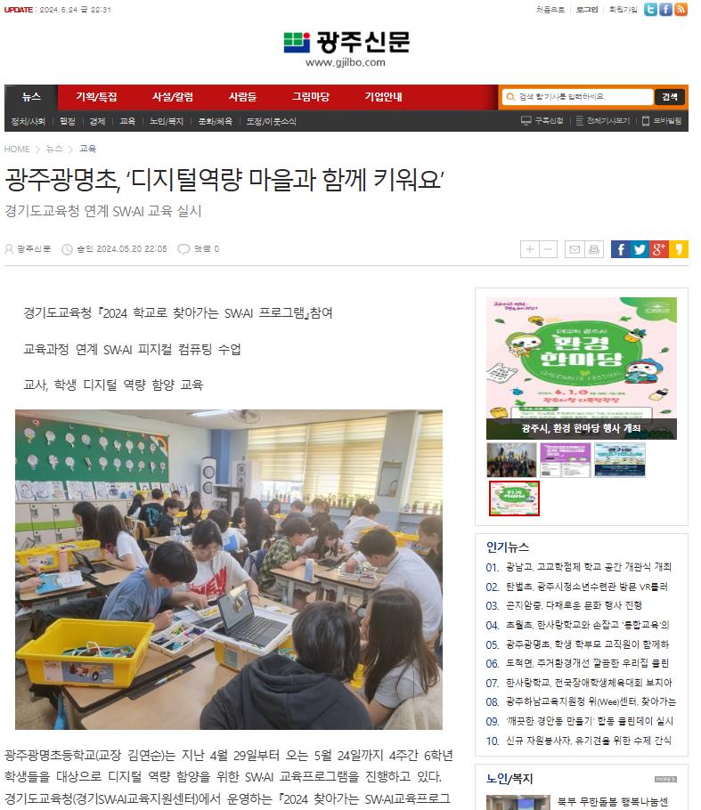 광주광명초, ‘디지털역량 마을과 함께 키워요( 『2024 학교로 찾아가는 SW·AI 프로그램』참여) 2024.05.27 조회수 2,491 강헌태 |