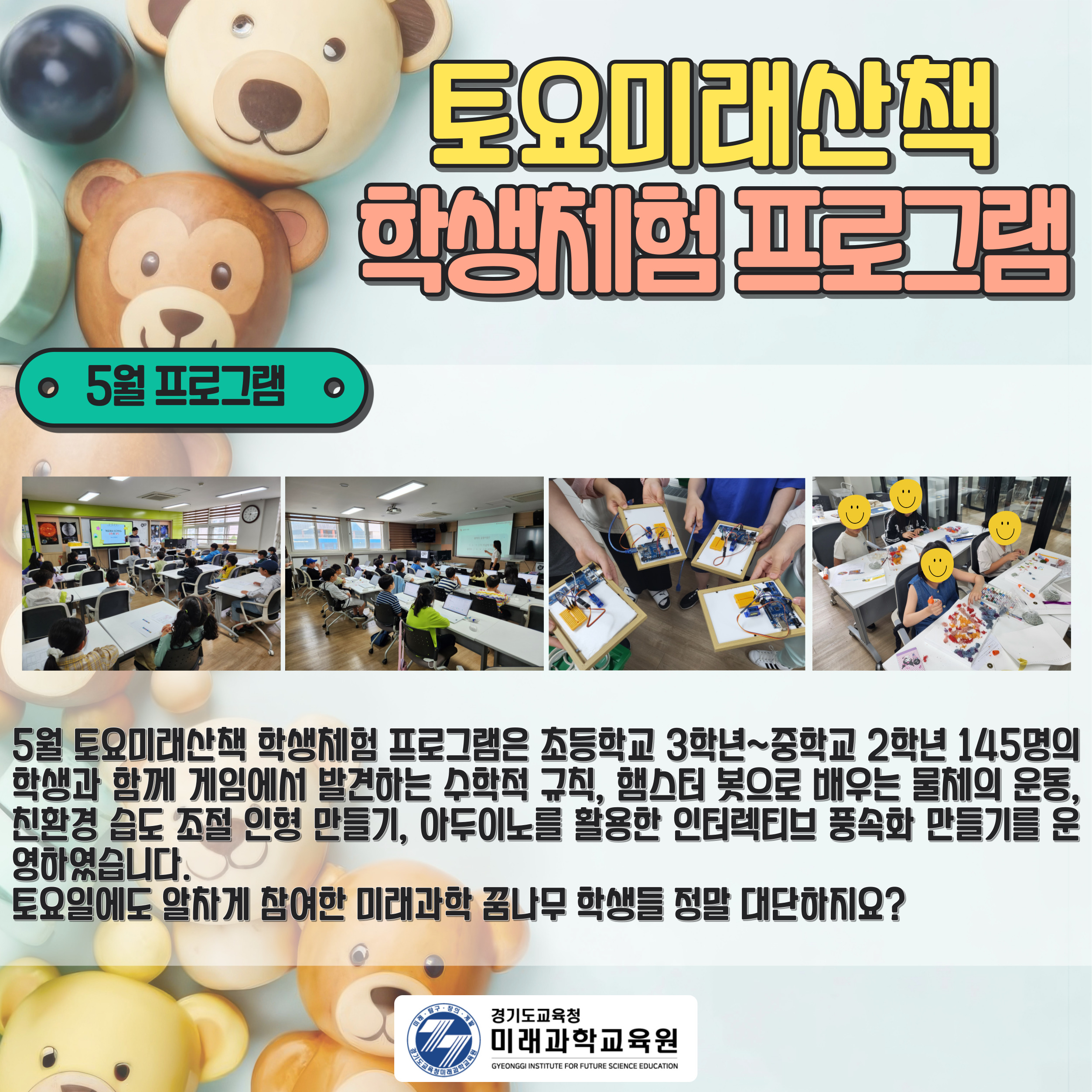 2024 토요미래산책 (5월) 학생체험프로그램 운영 2024.06.03 조회수 2,279 송희련 |