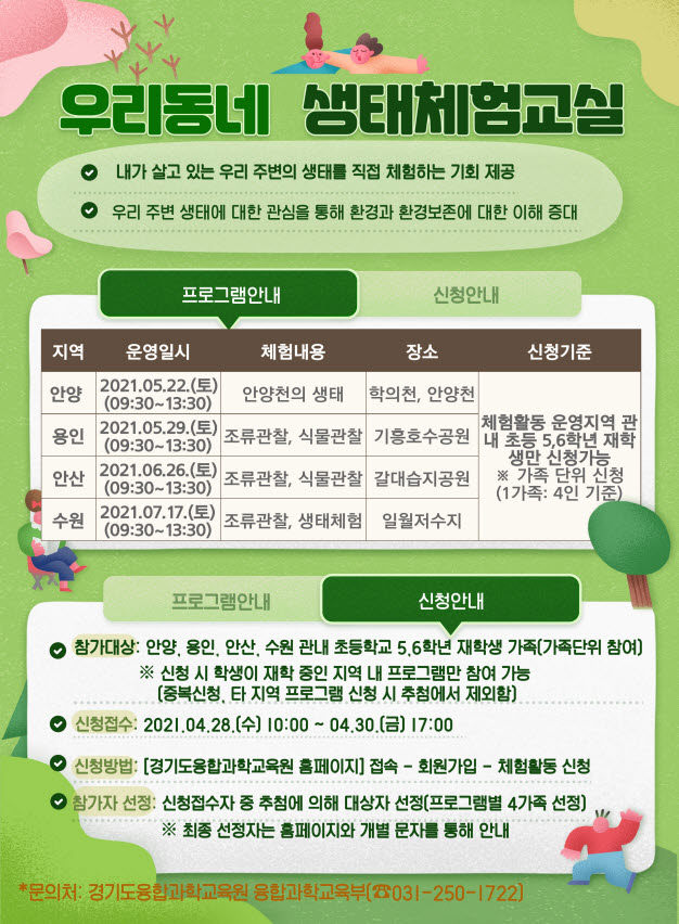 [알림] 2021년 상반기 우리동네 생태체험교실(안양, 용인, 안산, 수원) 신청 안내 2021.03.29 조회수 8,956 김지숙 |
