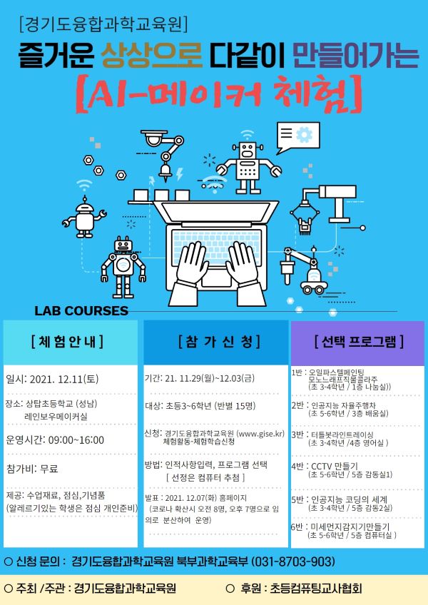 [학생체험활동 알림(성남)] 즐거운 상상으로 행복한 미래를 여는 메이커 체험교실 신청 2021.11.29 조회수 8,393 김영관 |