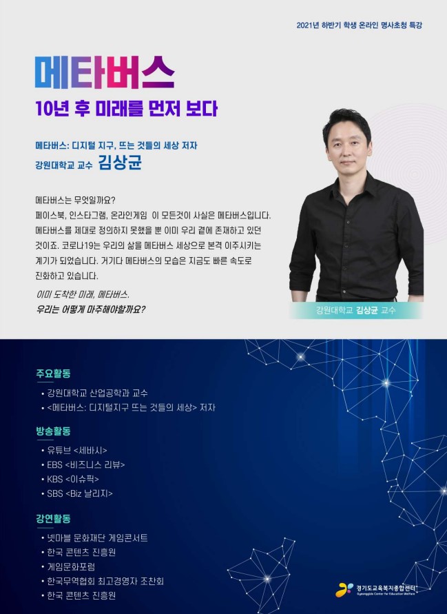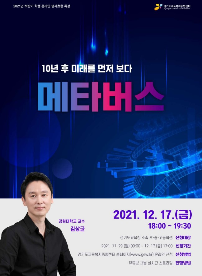 [홍보] 2021 하반기 학생 명사 초청 특강 개최 알림_경기도교육복지종합센터 2021.12.09 조회수 7,192 관리자 |