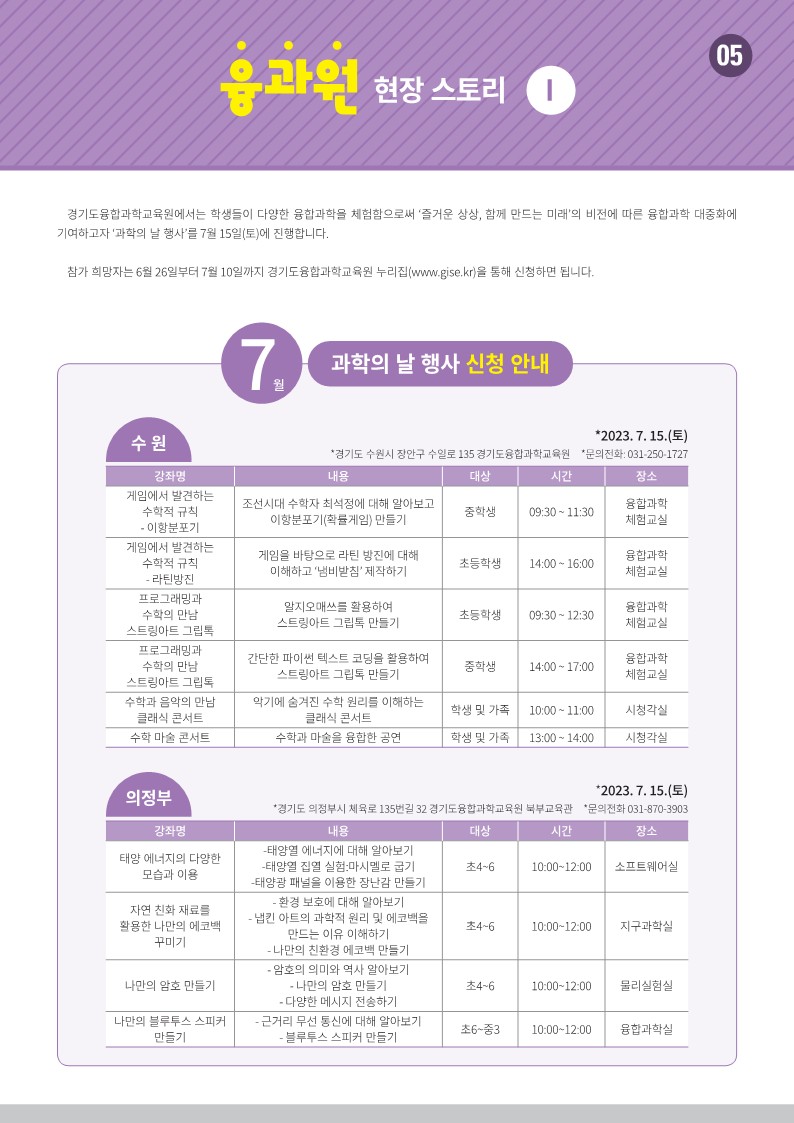 | 첨부파일 | 경기도융합과학교육원 소식지(2023년 여름호, vol. 04)_최종_용량줄임.pdf |