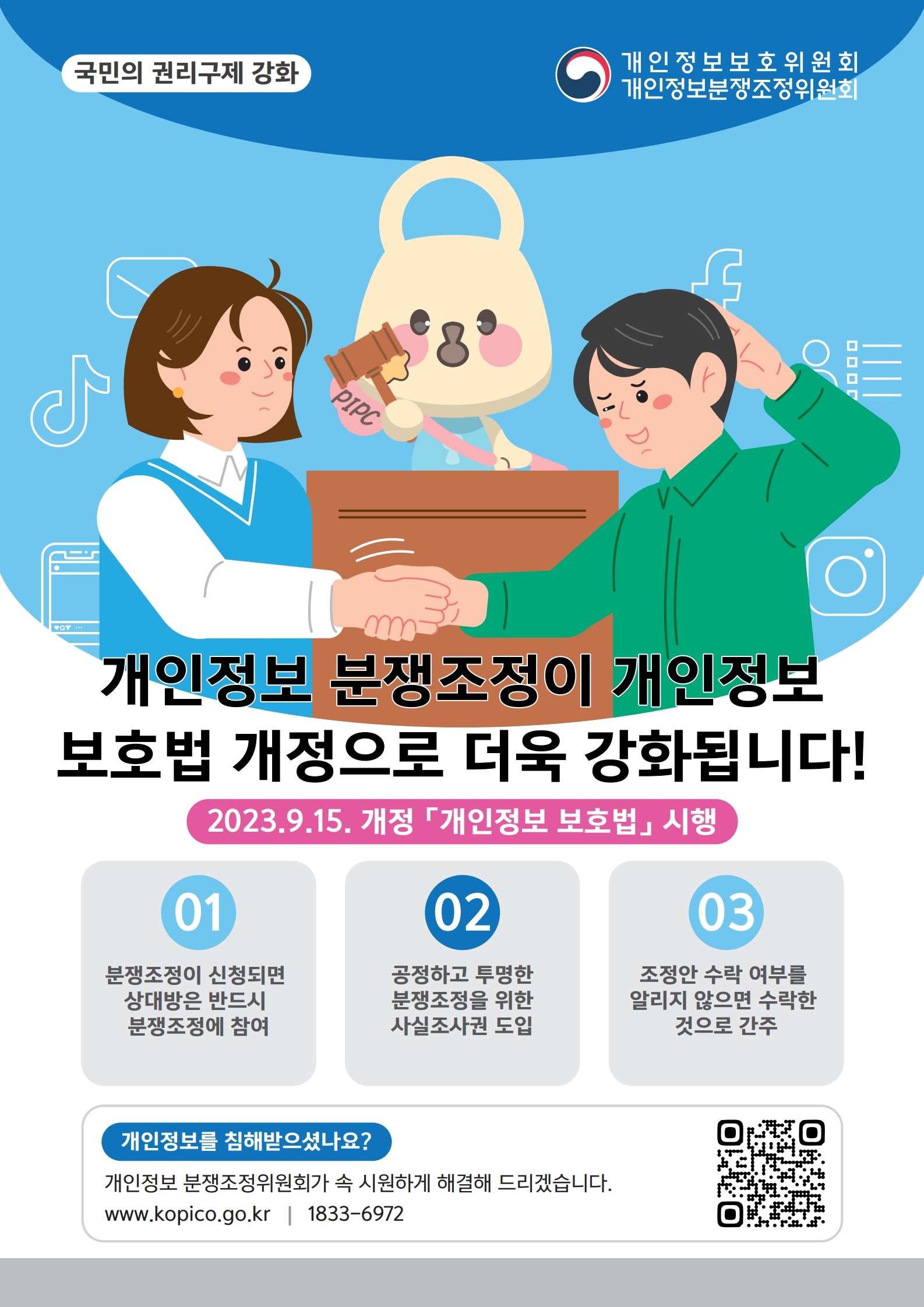 개인정보 분쟁조정이 개인정보보호법 개정으로 더욱 강화됩니다! 2023.10.06 조회수 4,408 홍경민 |