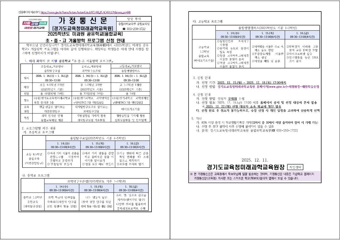 2025학년도 미과원 공유학교 겨울방학 프로그램(초중고) 신청 안내 2025.12.12 조회수 2,122 송희련 |