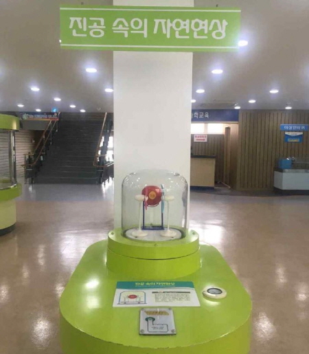 반구 안의 공기를 빼내 진공을 만들어 대기압에 대해 알아볼 수 있는 전시물이다.